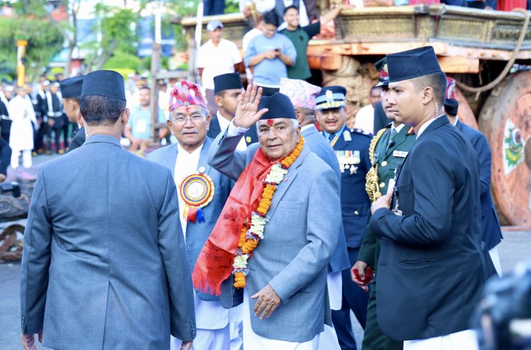 President Paudel attended the cultural festival dedicated to the Rato Machchhindranath, the God of rain and good harvest, at Jawalakhel