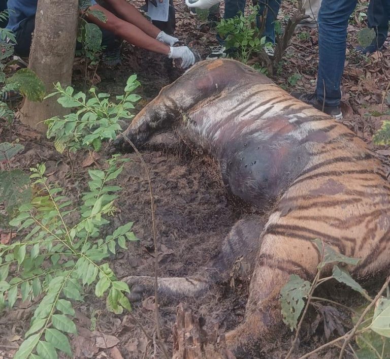 Kailali, April 19: A Royal Bengal tiger was found dead at Janashakti Community Forest of Tikapur Municipality-2 in Kailali district on Saturday. The female adult tiger was found dead in the forest, shared Dilip Yadav, the Chief at the Sub-Division Forest Office, Tikapur. Yadav shared that the front part of