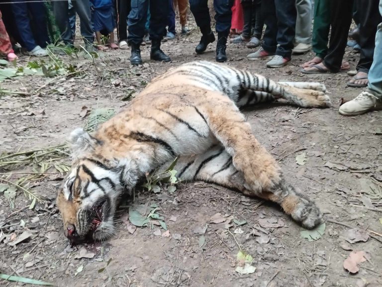 Parsa, Aug 10: A Royal Bengal tiger was found dead near Malibasti of Thori rural municipality-4 in Parsa district.Information Officer of Parsa Police, Kishor Lamsal shared that the tiger was found dead about 500 meters south from the postal highway at Malibasti at 7:30 am today. A team under the