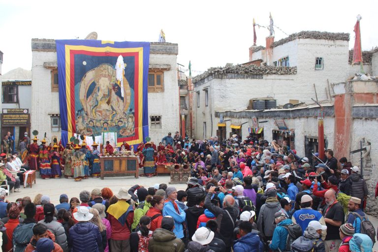 MUSTANG: The celebration of 'Tiji' festival having historical and cultural importance has been observed at Lomanthang in Mustang since last Friday. The festival is being marked by demonstrating a large-size thanka depicting a portrait of Buddhist religious preacher Padamsamba Rimpoche at the courtyard of Lomanthang palace and offering prayers as