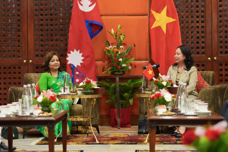 Kathmandu, Aug 23: Minister for Foreign Affairs Dr Arzu Rana Deuba paid a courtesy call on Vice President of the Socialist Republic of Vietnam Vo Thi Anh Xuan here today. The Vietnamese Vice President arrived in Kathmandu today for a three-day official visit to Nepal at the friendly invitation of