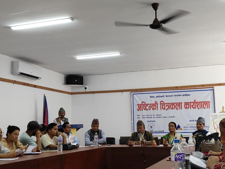 Kathmandu, Aug 10: A daylong workshop on Tharu Astimki Artwork, jointly conducted by the Agrasan Tharu Mahila Samaj, Kathmandu and the Nepal Academy of Fine Arts (NAFA) displayed the indigenous painting skills of the Tharu community and pointed out the urgency of reviving mural. The workshop was organized on the