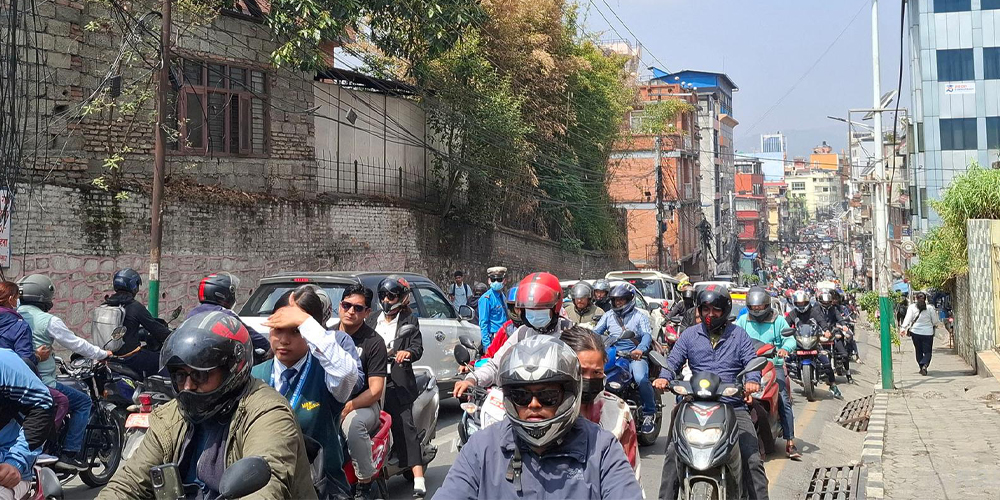 Kathmandu, April 20: Daily life in the Kathmandu Valley has been affected today due to the traffic congestion caused by two separate protests — one by the Confederation of Nepalese Teachers (CNT) and the other by the Rastriya Prajatantra Party (RPP).