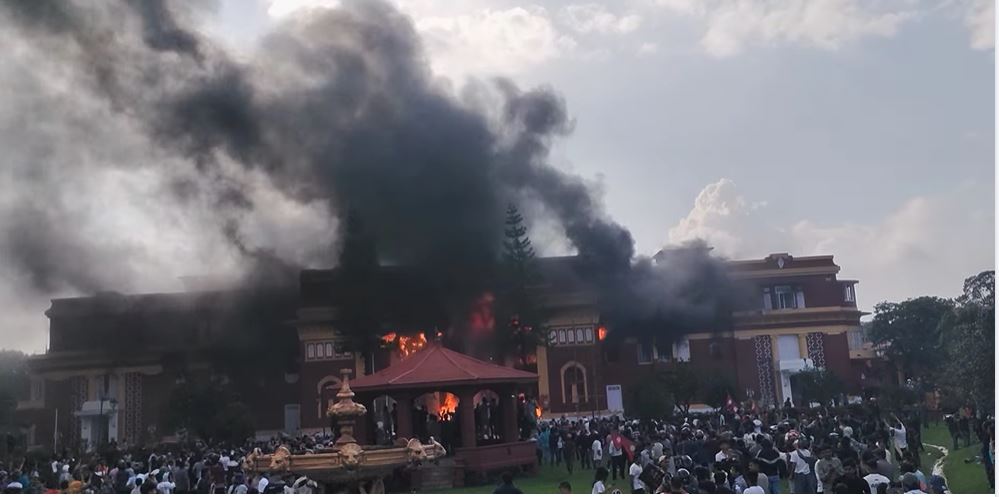 Kathmandu, Sept 9: The country’s main administrative center, the Singha durbar, has been damaged in attacks and arson by protesters that is taking in various parts of the country, including the Kathmandu Valley.
