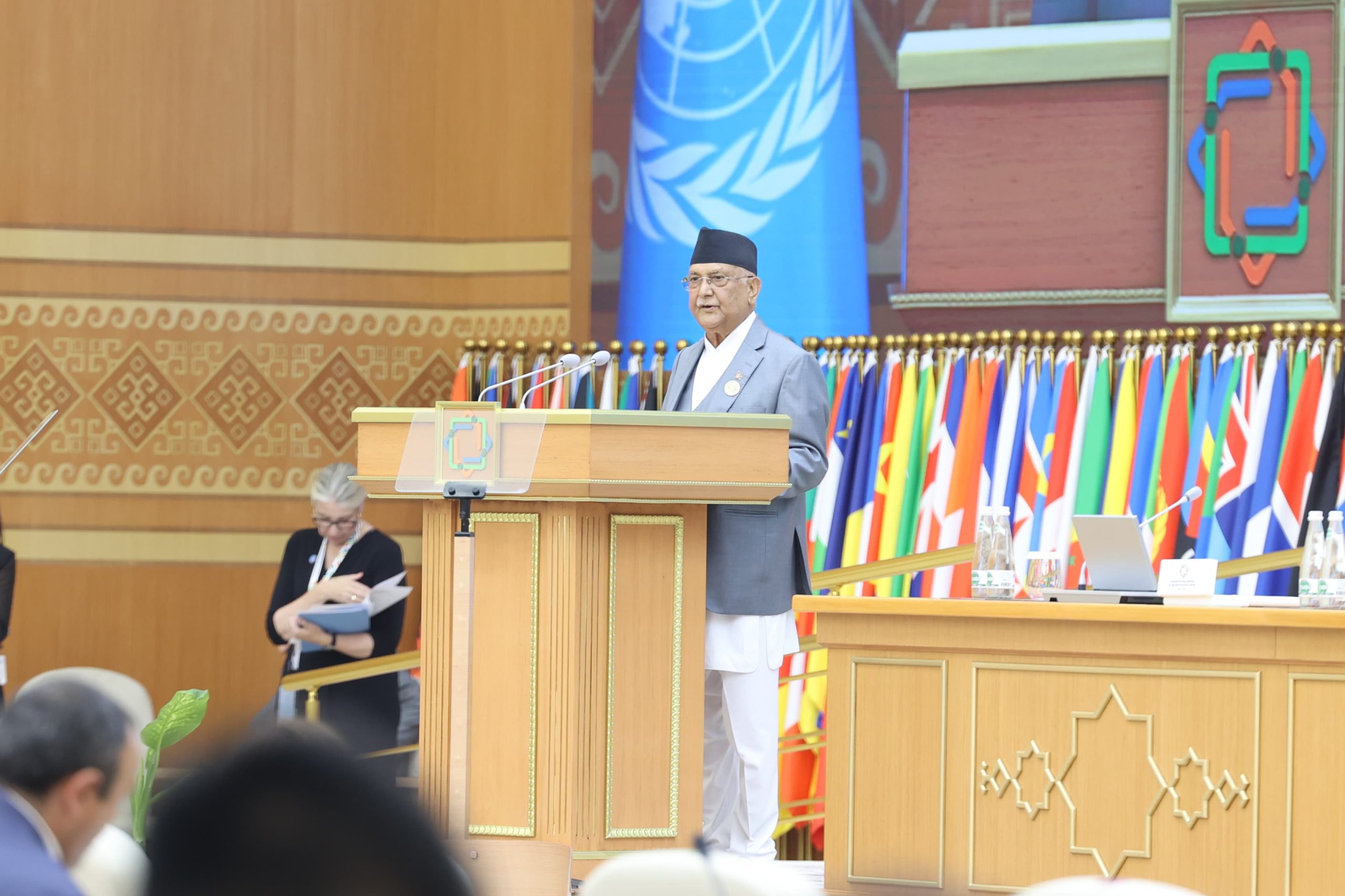 [Prime Minister KP Sharma Oli was addressing the Third United Nations Conference on Landlocked Developing Countries (LLDC3) in Awaza, Turkmenistan, on August 6, 2025]